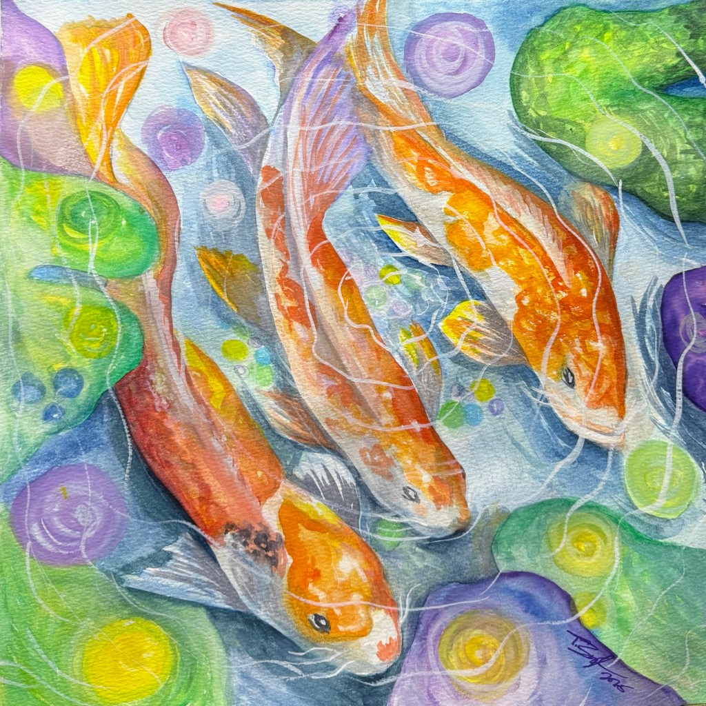 The painting isn’t just art; it’s a reminder of how caring for animals and channeling Reiki energy both teach us balance and flow. I am hoping this piece lands in a home where its energy can inspire healing and appreciation for nature’s beauty — just like the rescue water feature that first introduced me to koi.
